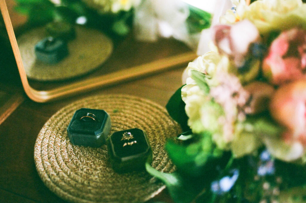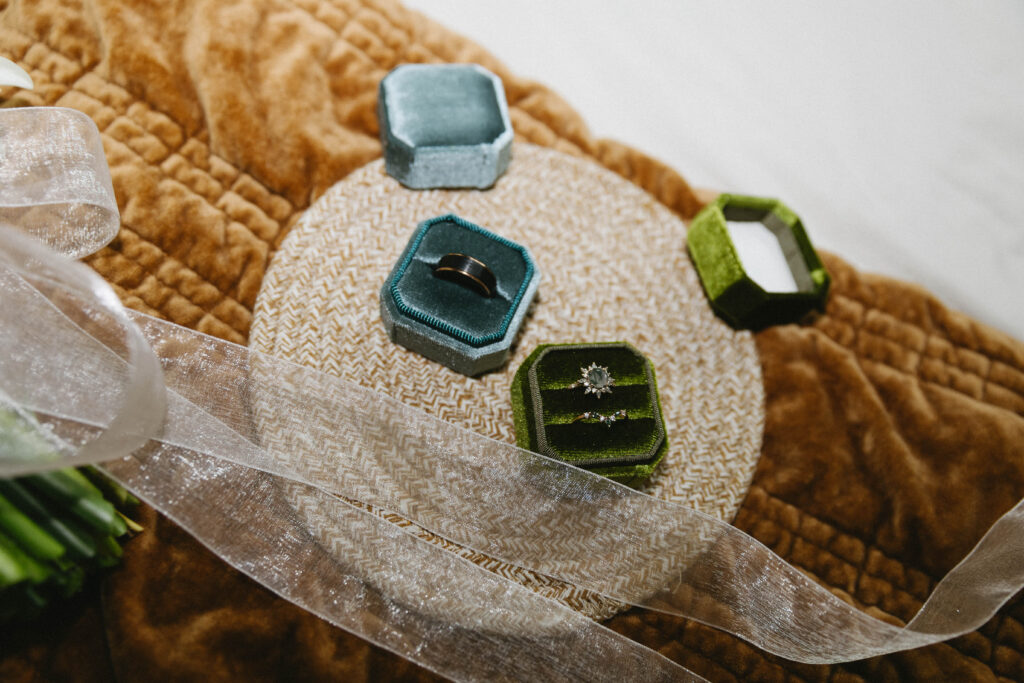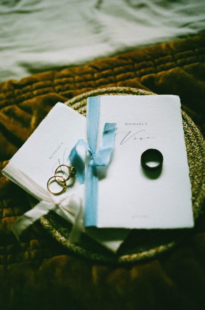 Hannah and Michael stayed at one of the Olson Cabins which was the perfect spot for them to unplug and relax and prep for their big day. While small, it boasts a well equipped kitchen, a fire pit, and endless stargazing. They did their first look here and I was able to get details of their rings, vow booklets, and Hannahs bouquet.