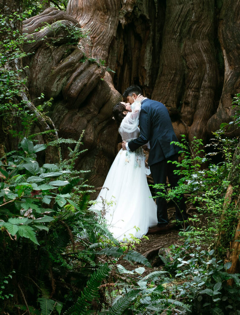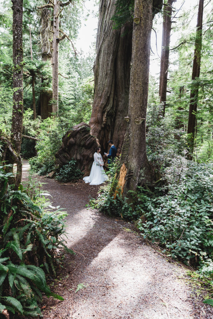 After we did detail shots, portraits, and their first look, we moseyed to Big Cedar Tree trail , which was about 40 minutes south of their airbnb, but only 5 minutes away from Ruby Beach (where we will end up next). Now, a couple of caveats for this elopement; Hannah and Michael did not hire an officiant to come out to the coast to marry them, which in the State of Washington, you do need. Instead they opted to have a private vow reading and make their nuptials official elsewhere (more on that later). So when discussing where they wanted to do their vows, I discovered this trail which was oh so peaceful and quiet and my goodness, the AIR. There’s really nothing like breathing in that coastal air surrounded by cedar trees.