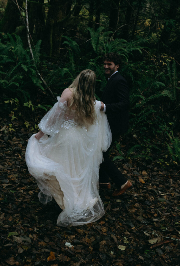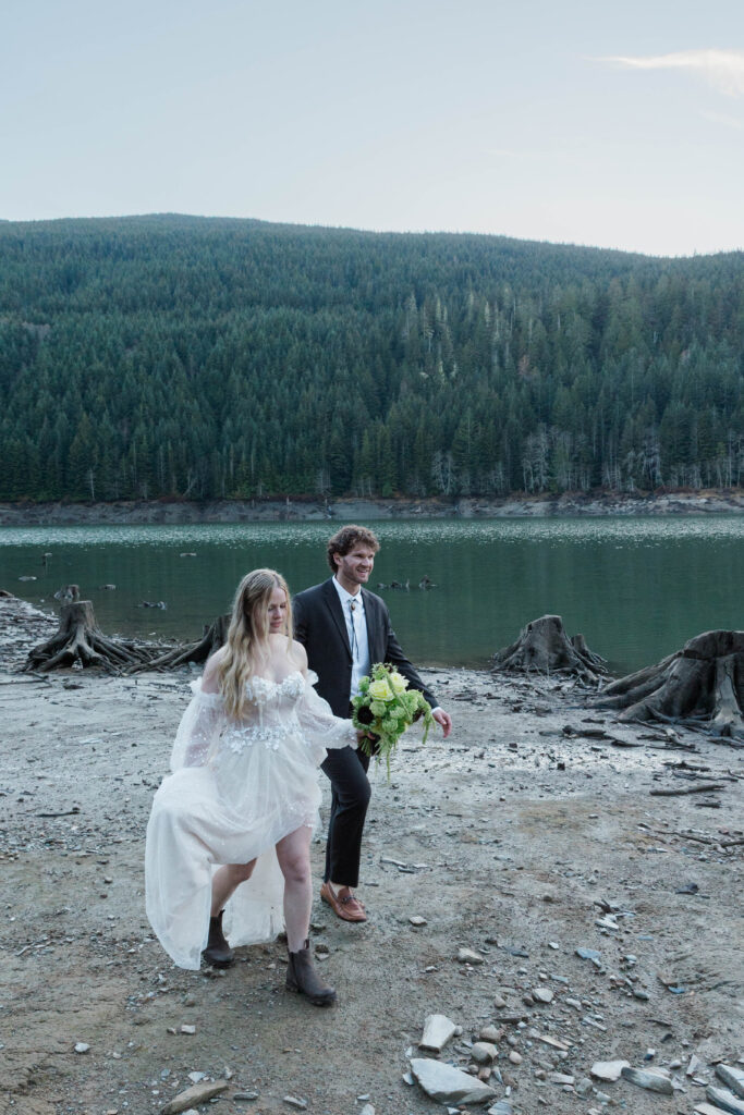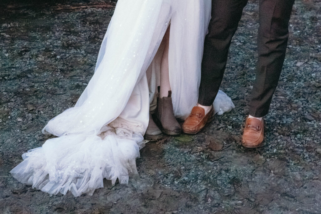 For coastal and rainy Washington elopements: waterproof is your best friend. Hunter boots in a fun color, waterproof Blundstones, or even simple rubber soled flats can save your day when the Olympic Peninsula decides to be the Olympic Peninsula.